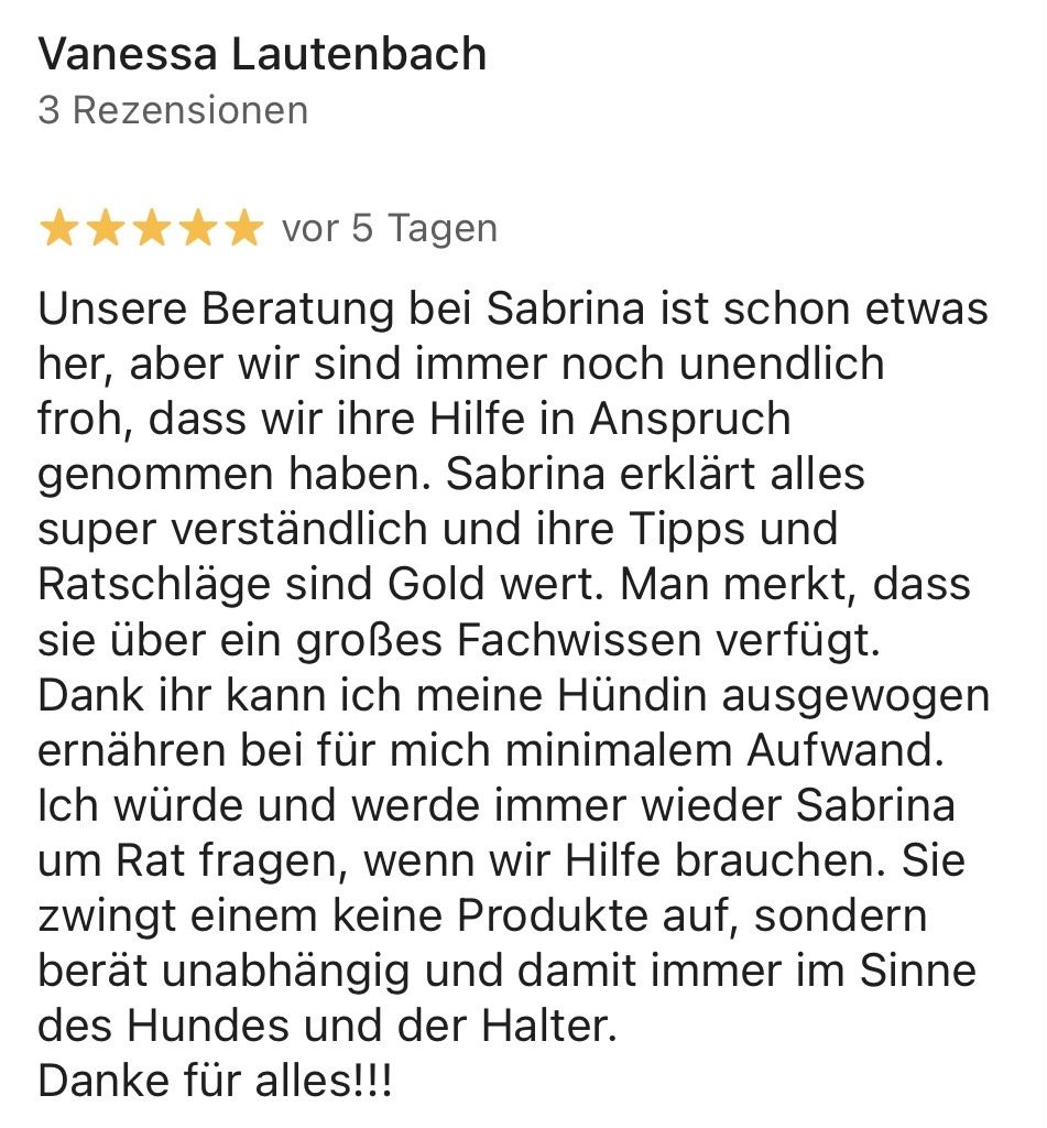 Wir empfehlen diese Beratung kontinuierlich weiter – für alle, die mehr als eine oberflächliche Futterberatung suchen und echten Wert auf die Gesundheit und das Wohlbefinden ihres Hundes legen.